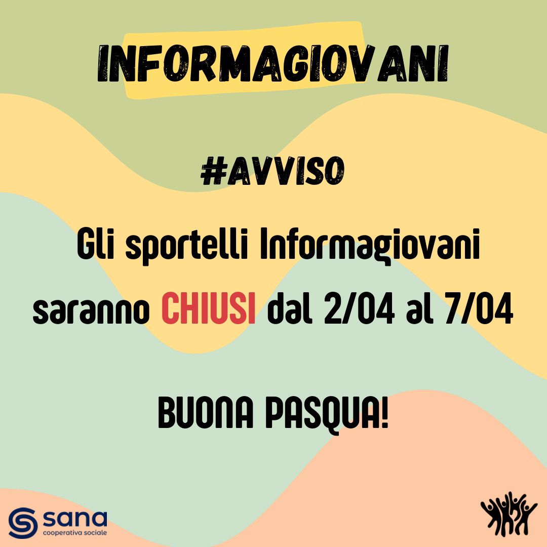 Si informa che gli Sportelli Informagiovani resteranno chiusi dal 2 al 7 aprile.